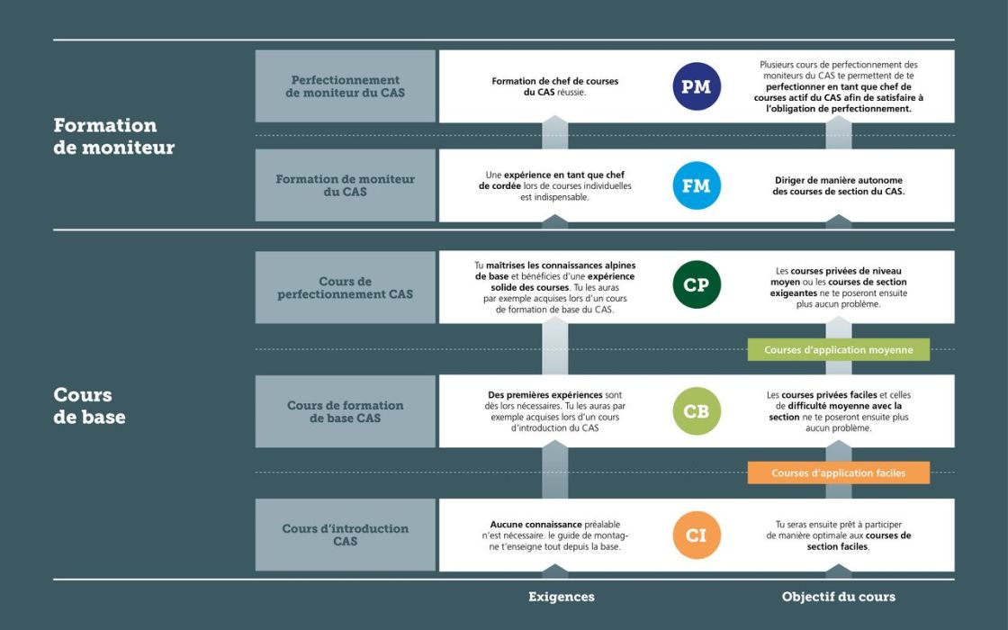 Apprentissage des techniques de base, encadré par un guide, pour mener une cordée sur des courses faciles sous la conduite d'un guide ou d'un chef de course. Coût : CHF 520.-